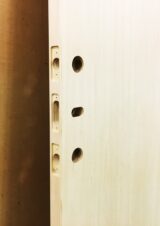 工場では写真の状態までの作業とし、「レバーや鍵の取付は現場で行います」。
